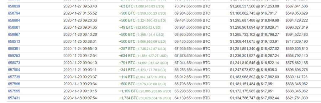 巨鲸在2021年1月29日至2月9日期间,价格约在31,259~44,106元价位时曾一度大量出场超过15,700枚,后来也有几次零星出场,但此后转出量皆不超过4500BTC,多半为增持为主。