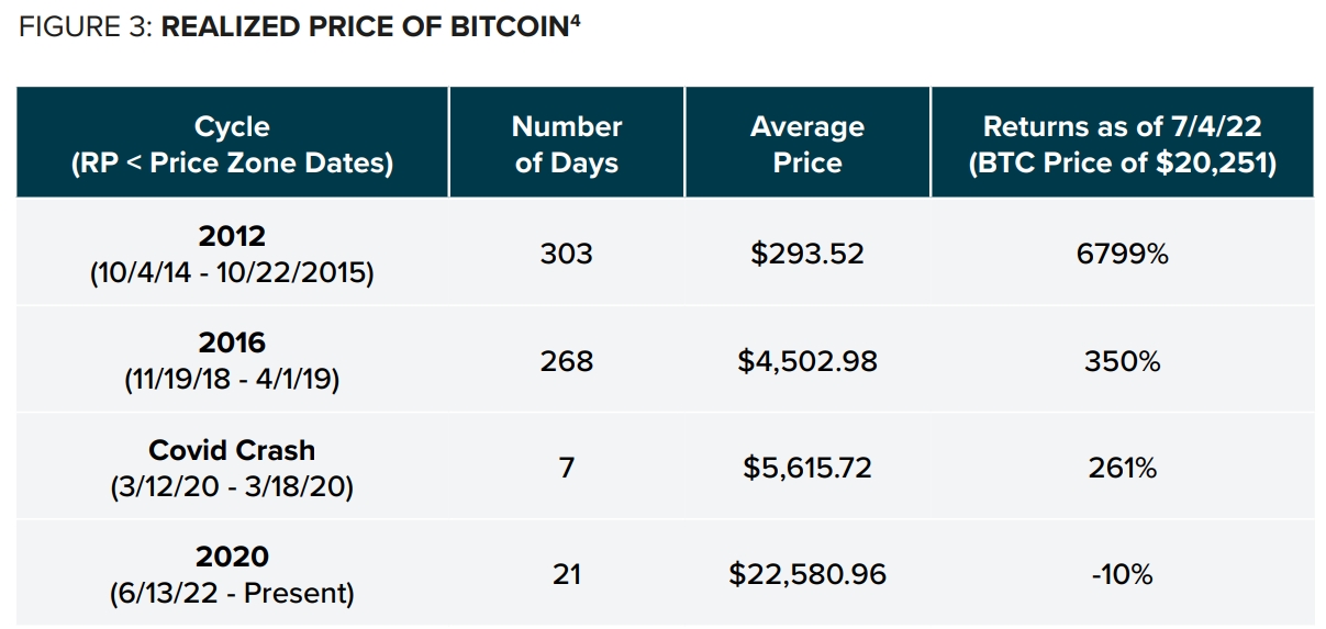 灰度提及,比特币的已实现价格在2022年6月13日跌破市场价格,这标志着熊市的开始,如果此次熊市重演先前的市场周期,那么从2020年开始的当前市场周期,可能还会持续不到250天,也就是当前的加密货币熊市可能会再持续8个月,但这也为投资者提供了最佳的买入机会。