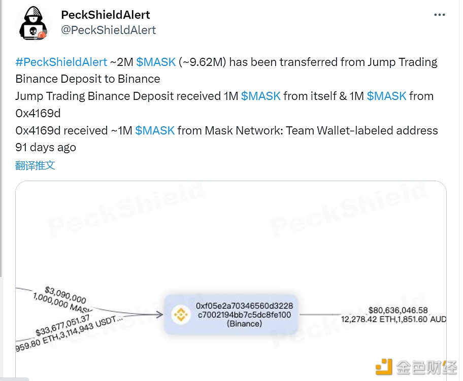 派盾监测数据显示,Jump Trading币安存款地址将200万枚MASK (962万美元) 转入币安。