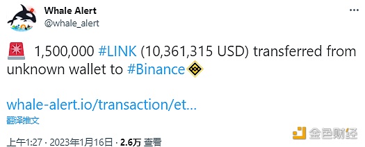 数据:1,500,000 LINK从未知钱包转移到Binanc