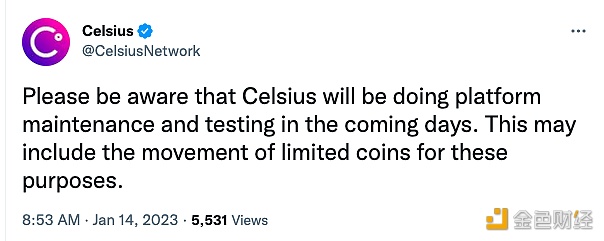 加密借贷平台Celsius在社交媒体上称,请注意,Celsius将在未来几天进行平台维护和测试。这可能包括有限的加密货币的移动。