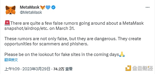 加密钱包MetaMask在社交媒体发文表示,市场上围绕其即将进行快照和MASK代币空投的传言不属实。MetaMask补充称,从上周末开始有人猜测MASK代币已经确定,还有各种关于如何使用MetaMask Swap或桥接以成为空投潜在用户的教程,但这些传言不属实,MetaMask空投需要继续等待,同时提醒用户注意安全。