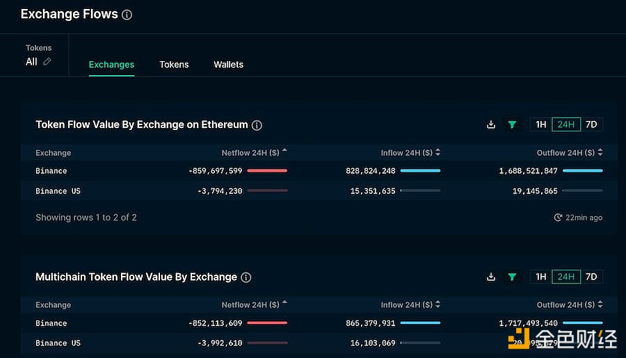 过去24小时内币安净流出约8.52亿美元
