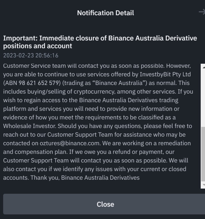 2月23日消息,据多个澳大利亚用户在社区反映,无法使用Binance Earn产品,提示因监管限制,不向所在地提供该服务。另有用户收到要求立即关闭Binance澳大利亚衍生品头寸和账户的提醒,除非证明自己为批发客户(Wholesale client)。还有人回复称:“在澳大利亚,您必须满足复杂的投资者分类才能使用衍生品。这不是什么令人震惊的。”