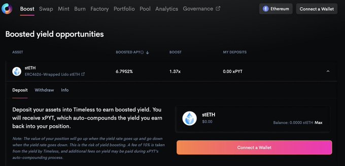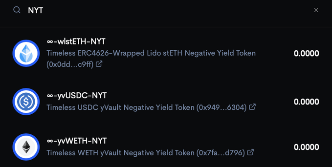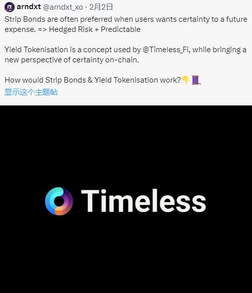 永久收益代币,其价格涨,收益涨; 负收益代币,其价格跌,但是同样带来收益涨。@arndxt_xo之前分享了Timeless融入零息票据的概念,让用户能够提升、对冲和交易收益率。