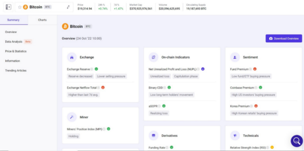 注册一个免费的基本账户以访问 CryptoQuant 上的大量指标。您可以访问包括当天在内的数据。它们还在摘要页面上提供简单的可视化。