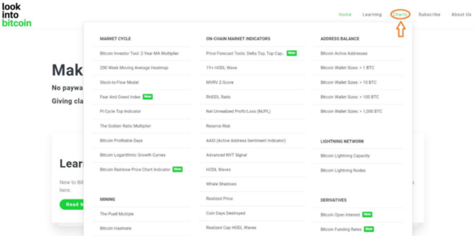 这是我个人的最爱之一。LoGate.io Into Bitcoin 提供了大量关于比特币的图表。该网站有一个非常干净的界面,在每个图表下,都有如何阅读和解释数据的详细说明。所有日期都是免费的,无需登录。这个网站上我最喜欢的一些工具包括 MVRV-Z Score、HODL Waves 和 Net Unrealized Profit/Loss (NUPL)。