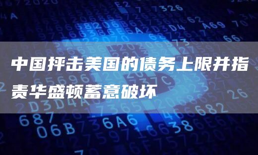 中国抨击美国债务上限并指责华盛顿蓄意破坏