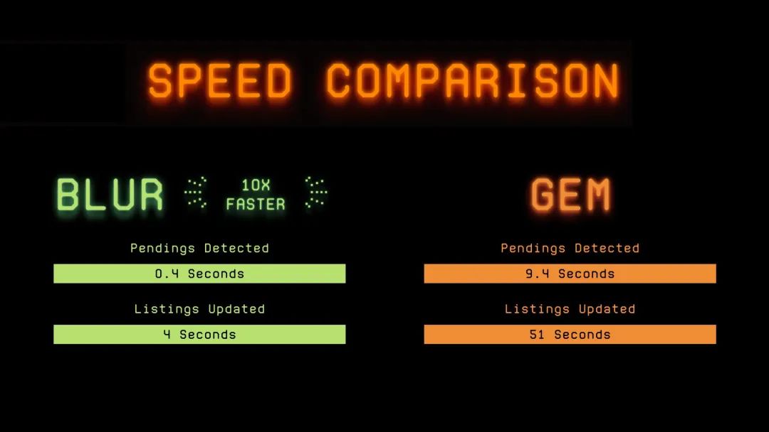 Blur官方宣称Blur比Opensea收购的Gem快 10 倍,但Blur并未展示出他们团队链下的设计方案。不过从他们的合约设计来看,设计非常简洁,PolicyManager可以很方便地添加新的交易策略,而且还加入了批量签名和预言机签名功能,使得用户更加方便地进行NFT交易。