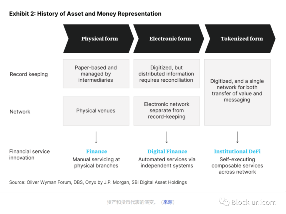 但金融经济并非一成不变。从公元前 3000 年的巴比伦帝国开始,人们用泥板来记录债务,然后才演变成纸质形式,金融已经进入了一个几乎纯粹的数字时代。尽管发生了这些变化,但金融事件的记录仍然发生在各个孤立的账本之间,必须进行协调。这会导致显著的低效率,例如增加成本和延长结算时间。互操作性的缺乏以及由此产生的分散化流动性,为下一个围绕资产标记化的金融时代提供了机会。