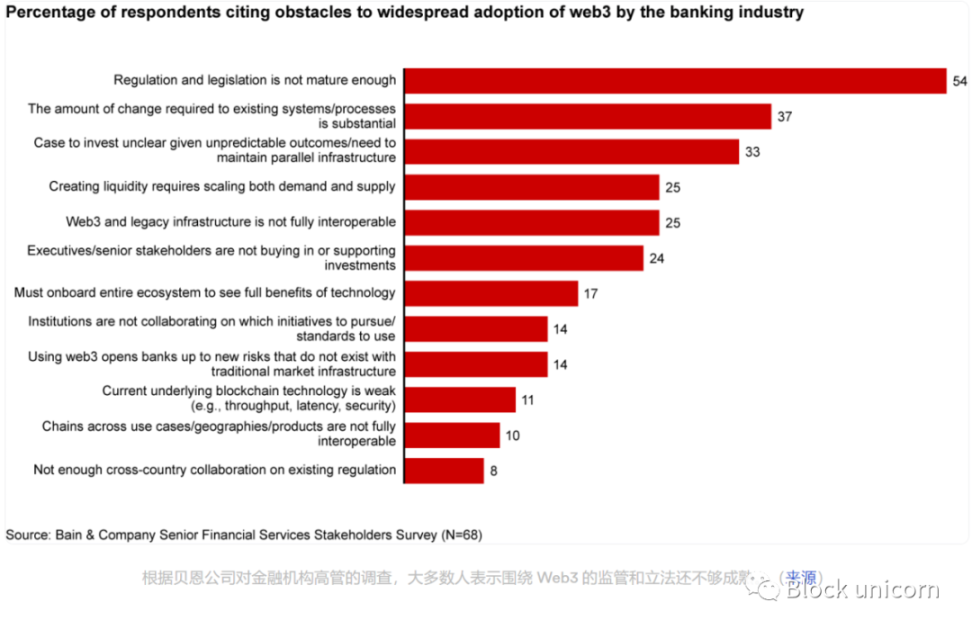 监管的明确性:对于许多对资产代币化感兴趣的金融机构来说,特别是在公共区块链上,主要的障碍是缺乏监管的明确性。某些司法管辖区,如欧盟、瑞士、英国和日本,已经在建立明确的框架方面取得了切实的进展,而其他国家,如美国,在很大程度上仍然是一个进展中的工作。 许可:为了遵守围绕公共区块链和资产代币化的现有和即将出台的金融法规,代币发行者往往必须通过实施 KYC/AML 检查来增加权限(如在保险 / 赎回期间或在转让时)-- 这与 DeFi 的规范不同。 身份信息:对细化权限控制的需求,需要强有力的解决方案来确定用户身份和风险状况。去中心化身份识别器(DID)和其他保护隐私的身份解决方案,是大多数机构进入 RWA 代币化的先决条件。 连接性:多链生态系统继续扩大,导致机构必须插入越来越多的链,以访问 / 发行 RWAs。诸如即将推出的跨链互操作性协议(CCIP)等解决方案使机构不仅能够将现有的后端系统连接到区块链上,而且还能跨链连接 RWAs。 储备的证明:由于 RWA 代表链外资产,DeFi 应用对其真正的抵押品的洞察力有限。诸如 Chainlink Proof of Reserve 等 Oracle 解决方案通过在链上提供抵押数据(如 TrueUSD)来解决这一挑战。