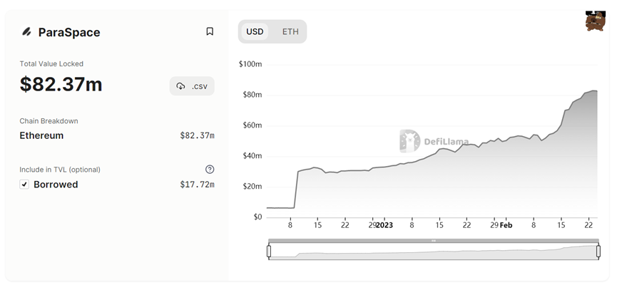 (ParaSpace 的 TVL 保持良性上涨趋势,defillama)