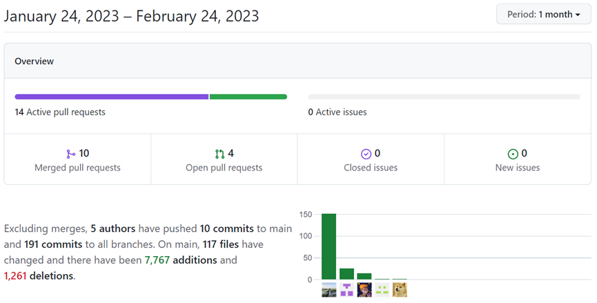 根据 Github,过去一个月 Paraspace-core 的代码仓库有着 5 位活跃开发者,添加了 7 千余行代码。