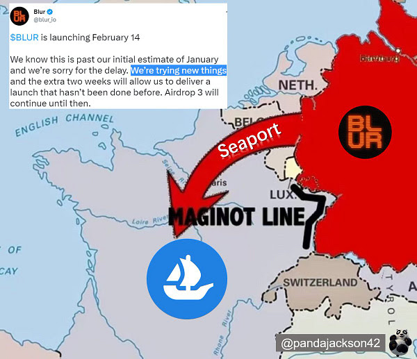毕竟,OpenSea 打败 Blur 的方法不就是对上述四个要点进行打击吗?蚕食 Blur 用户体验的护城河,推出自己的奖励,推进自己的计划和战斗精神?甚至,OpenSea 最终可能不需要$SEA 就能在一段时间内击败 Blur。