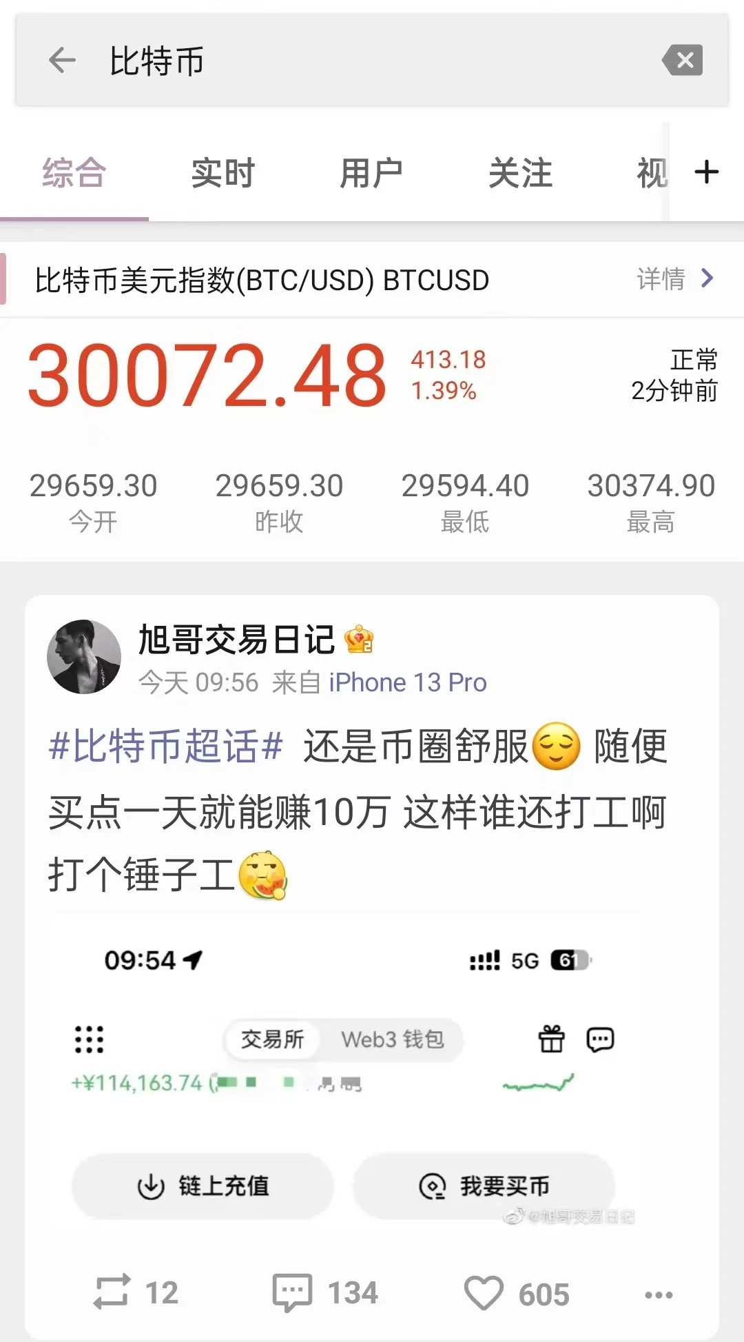 抖音微博显示价格,比特币重回30000美元