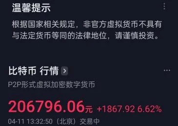 观察者网发现,相较昨晚,今日下午抖音APP内显示的比特币行情上方多了一个提示:根据国家相关规定,非官方虚拟货币不具有与法定货币等同的法律地位,请谨慎投资。